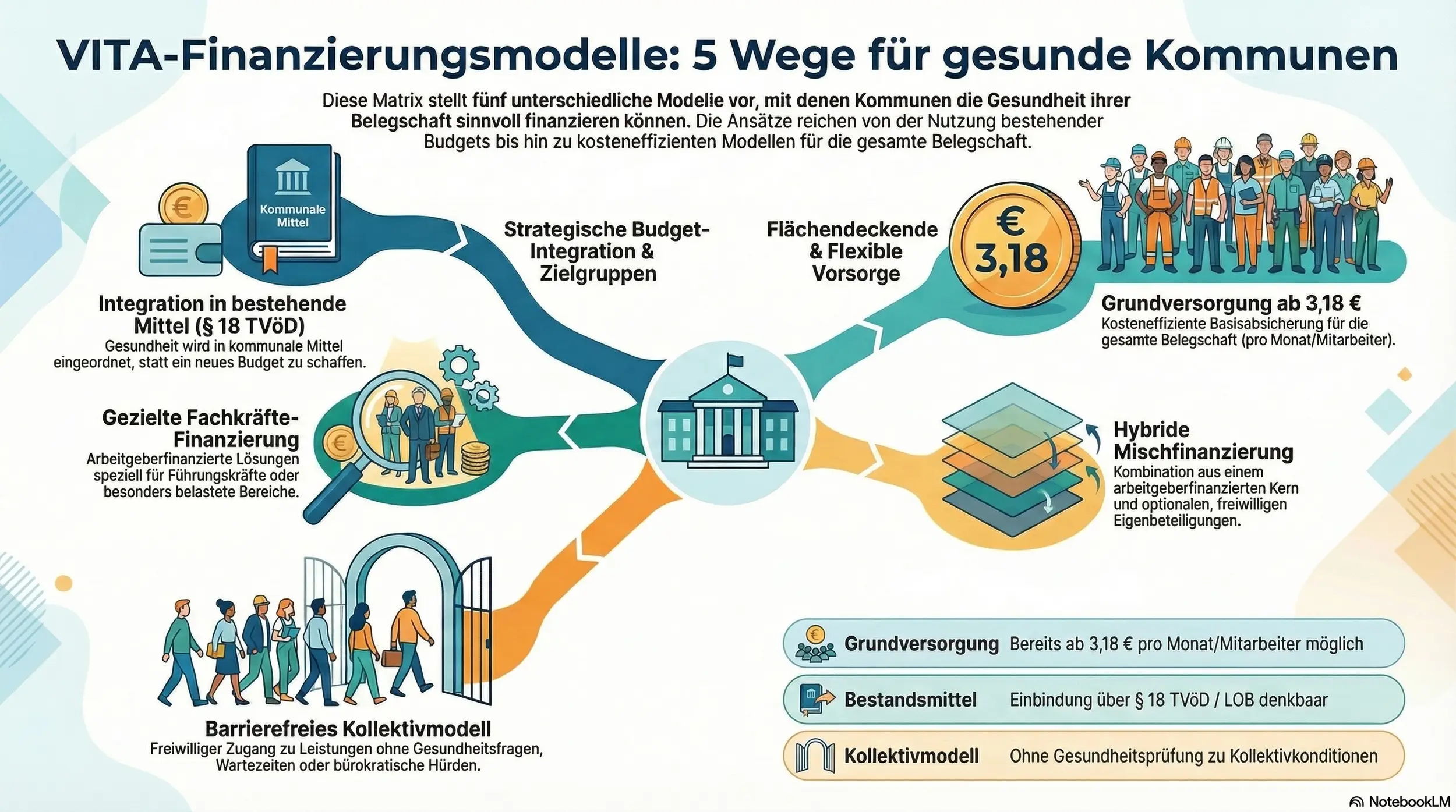 Gesundheit wird nicht zwingend als neues separates Budget gedacht, sondern in bestehende kommunale Finanzierungsmöglichkeiten eingeordnet. Dazu kann je nach Ausgangslage auch das Leistungsbudget nach § 18 TVöD gehören. Dadurch wird Gesundheit nicht zur zusätzlichen Hürde, sondern zu einer realistisch darstellbaren Versorgungsentscheidung.